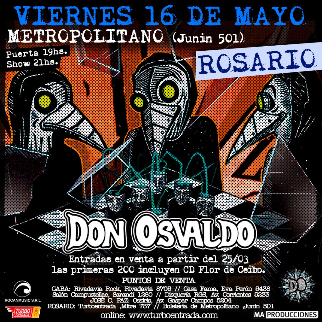 Durante el show del sábado, la banda anunció en pantallas una de sus próximas fechas: el viernes 16 de mayo, Don Osvaldo se presentará en el Metropolitano de la ciudad de Rosario.