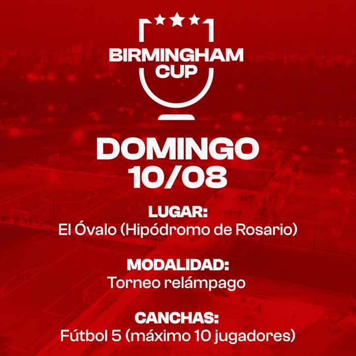 El domingo 10 de agosto se llevará adelante la primera edición de BIRMINGHAM CUP, un torneo relámpago de fútbol 5 que reunirá a los equipos en el predio de El Óvalo, el complejo deportivo más grande de Latinoamérica, ubicado en el Hipódromo de la ciudad de Rosario. La jornada combinará deporte, comunidad y pasión futbolera en un evento pensado para celebrar los vínculos que nacen dentro y fuera de la cancha.