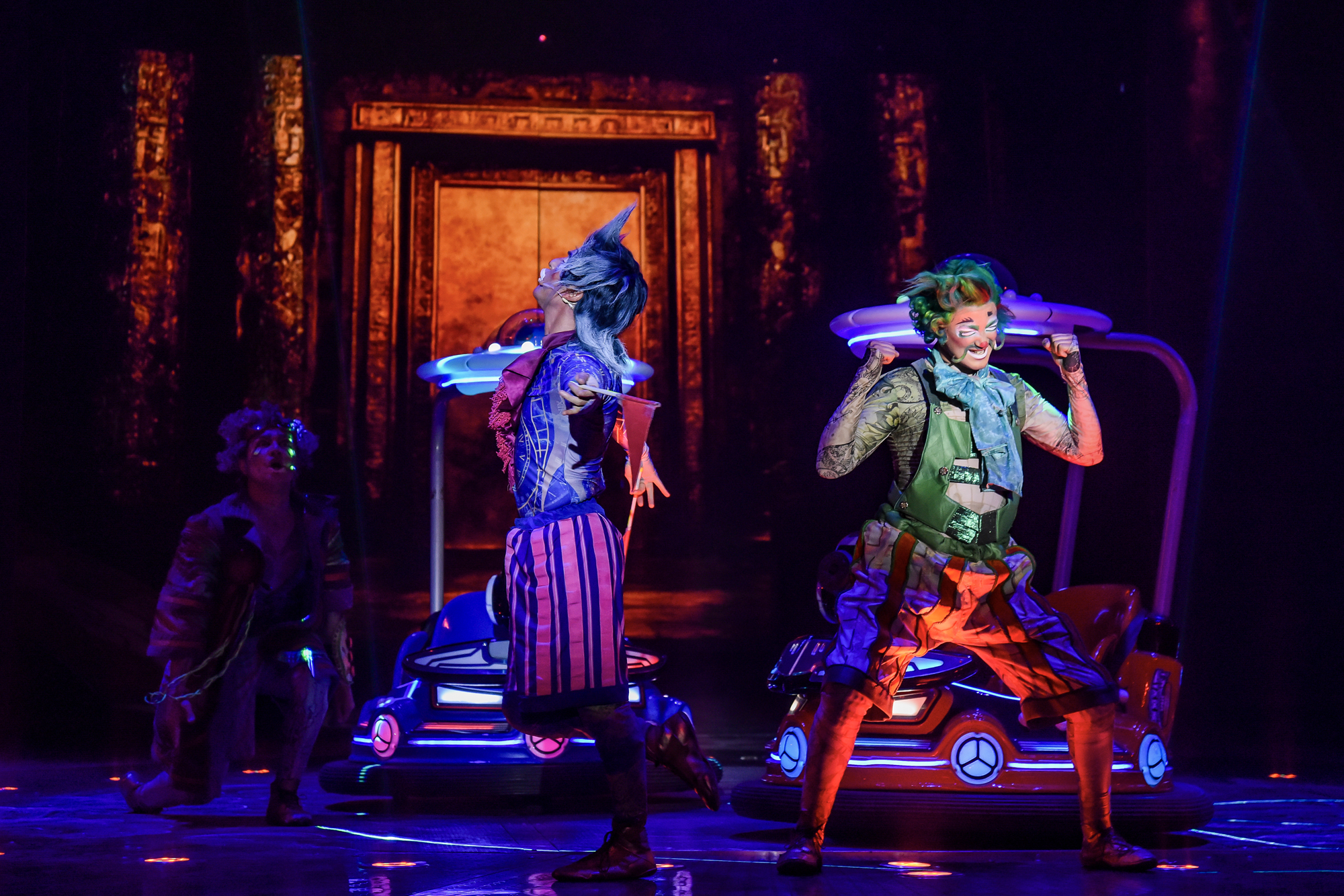 El vestuario cumple un rol fundamental en la visual y en la narrativa de la historia. Es audaz, llamativo y exuberante, tiene una calidad que se impone sin esfuerzo, lucido por artistas que le dan cuerpo y sentido a la puesta. Las coreografías se mueven entre la delicadeza y el riesgo, apostando al vértigo y a la precisión como parte esencial del relato escénico.