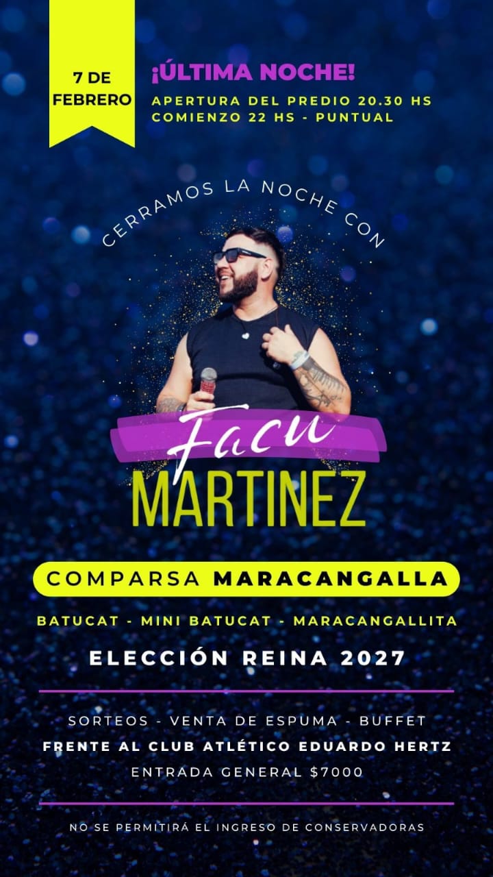 FACU MARTÍNEZ se encuentra en un gran presente artístico. En la previa del Festival Faro estrenó su increíble mix de cumbia con los clásicos «Así fue» y «La hice llorar» grabado en vivo en la Fiesta Nacional de Colectividades de Rosario 2025, una de las celebraciones más convocantes de la ciudad.